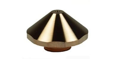 Nozzle – 1.2 mm double (10 pack), Double: Insert pressed into a standard cylindrical nozzle for improved edge quality, laminar gas flow and spatter resistance. Primarily used in mild steel applications., , L501310 Laser Experts Part #: NZLTRF2014405.